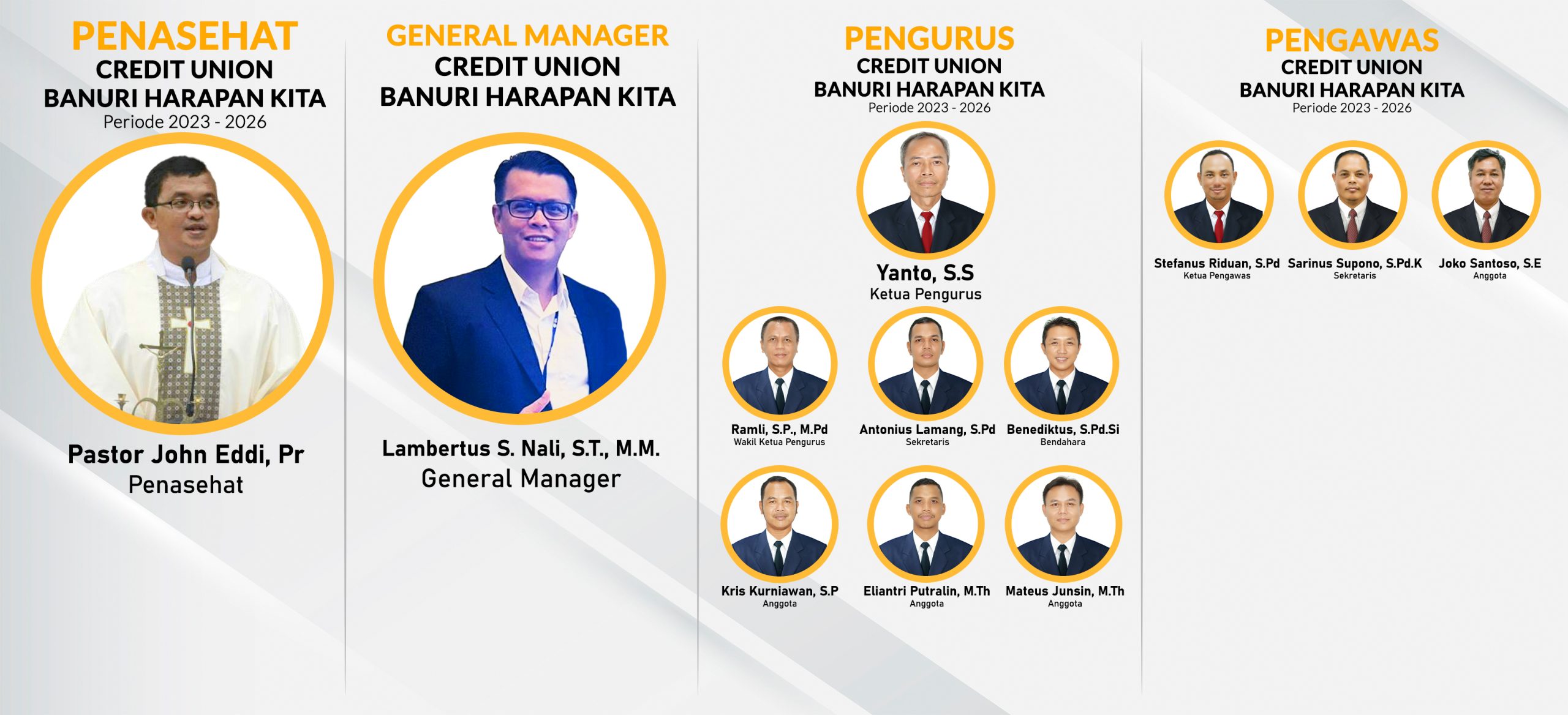 Kemudian di pilihlah kepengurusan CU Banuri Harapan Kita, lagi dan lagi kesulitan di kepengurusan itu  pertama harus ada  ketua  dan bendahara mengingat kepercayan itu sangat penting di suatu lembaga. Bapak Pilipus Lada  termasuk orang yang vocal dan paling keras sehingga beliau menyatakan “Saya menawarkan diri,  saya menggagas, saya merancang semua ini sehingga saya yang menjadi ketua. Kalau saya menjadi ketua silakan merekomendasikan orang yang menurutkalian tidak jujur yang suka korupsi asalkan saya ketua”, kuncinya ada di pimpinan.
